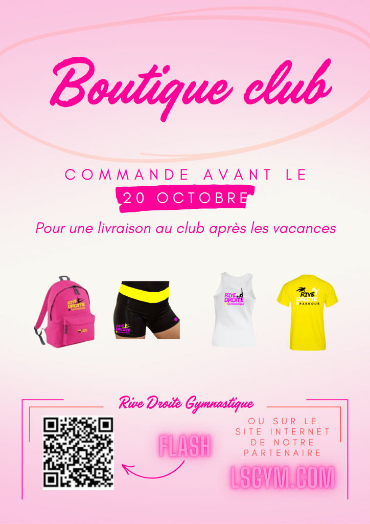 En partenariat avec Lune et Soleil Gymnastic, nous avons crée une boutique club Rive Droite Gymnastique afin d’offrir à nos licenciés la possiblité de pratiquer leur sport dans une tenue adaptée et confortable.